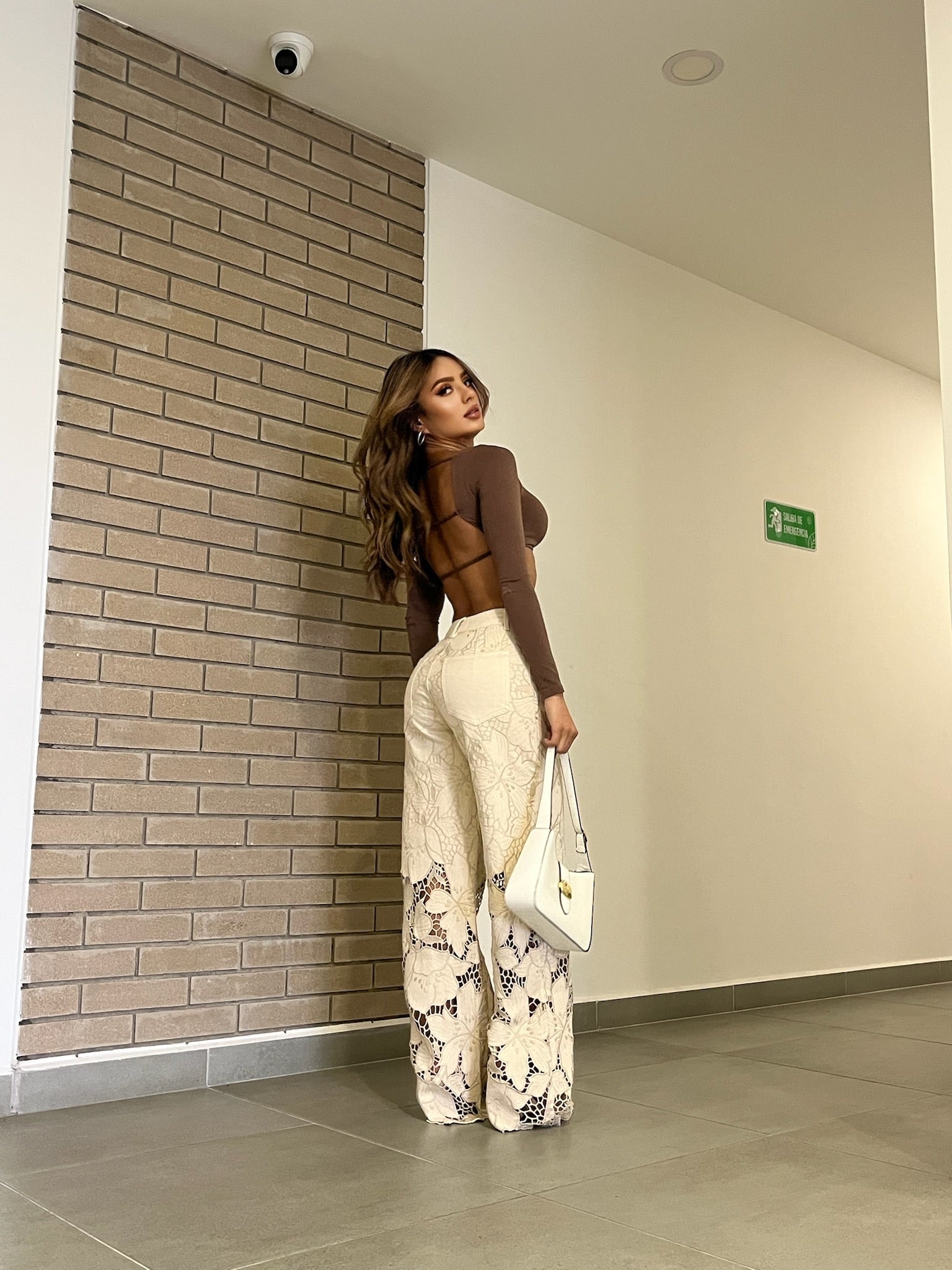 Pantalón palazzo en tono beige con diseño calado y bordado floral, ideal para darle un aire elegante y sofisticado a tu look. Su estilo de tiro alto estiliza la figura, mientras que el corte amplio aporta frescura y comodidad. Los detalles en encaje hacen que sea una prenda única, perfecta para destacar en cualquier ocasión.
