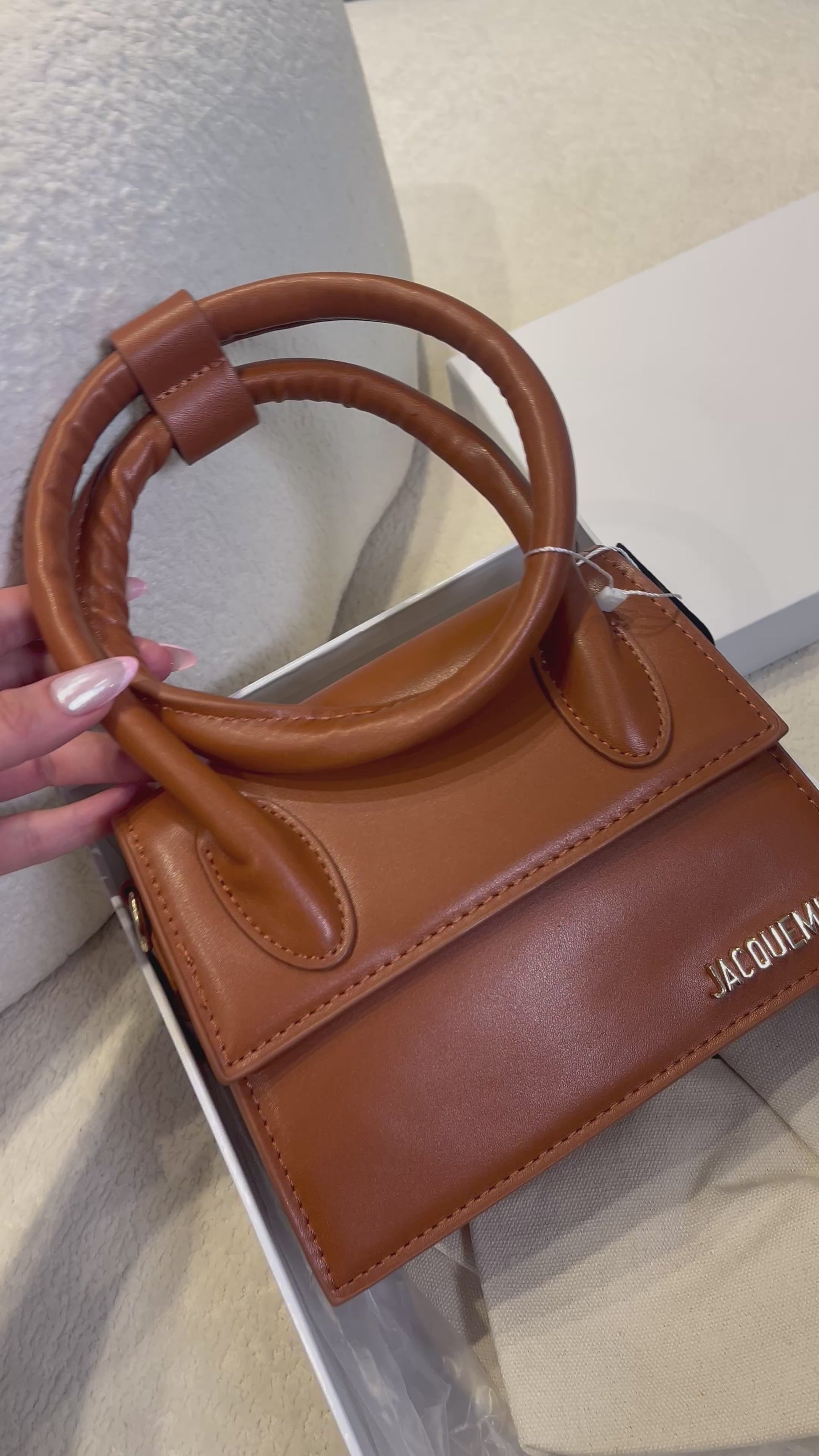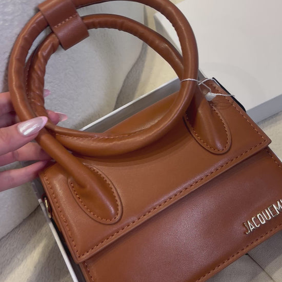Bolso mini estructurado en tono café, con acabado liso y diseño elegante. Cuenta con doble asa superior redondeada y cierre tipo solapa, ideal para complementar looks sofisticados y modernos. Un accesorio compacto, chic y atemporal. 🤎👜