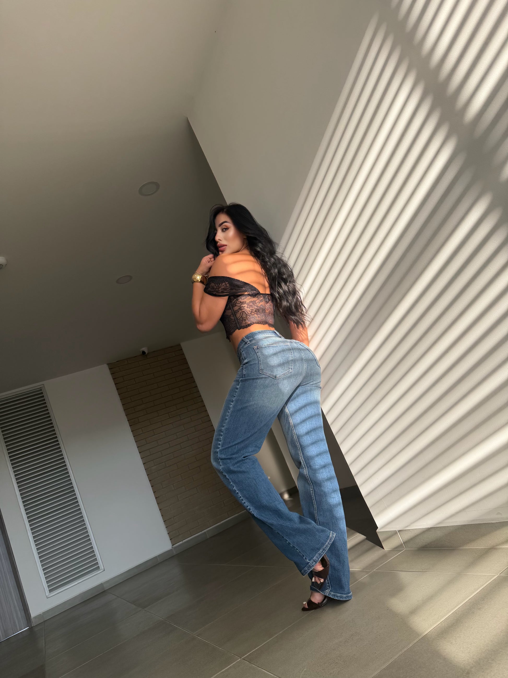 Pantalón de mezclilla azul clásico, de tiro medio y corte recto. Su diseño con efecto deslavado en las piernas le da un toque moderno y versátil, ideal para combinar tanto con blusas elegantes como con prendas casuales. Un básico imprescindible para looks cómodos y con estilo.