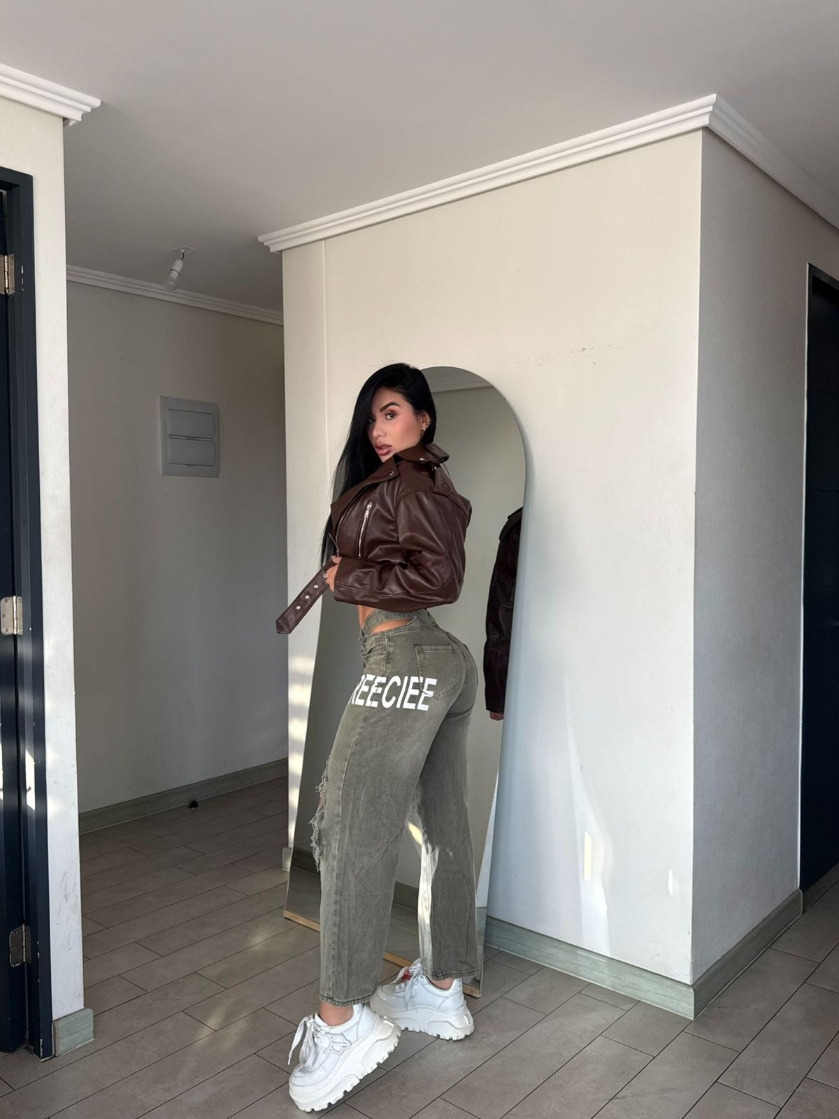 Luce con estilo con nuestros jeans oversize creecie diseñados para destacar. Con una silueta amplia de corte recto, estos pantalones ofrecen comodidad sin sacrificar el estilo urbano. Están confeccionados en denim de alta calidad y cuentan con detalles rasgados en las piernas que aportan un toque rebelde y moderno.