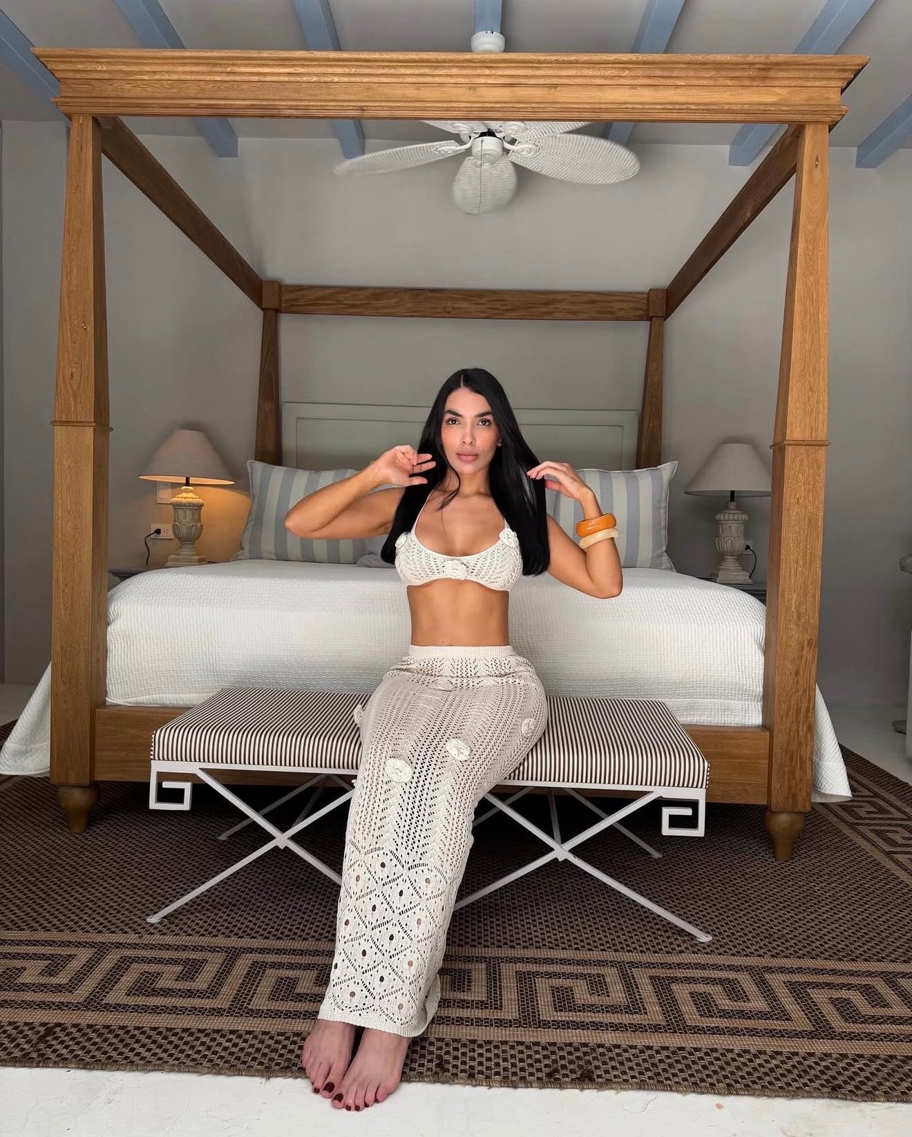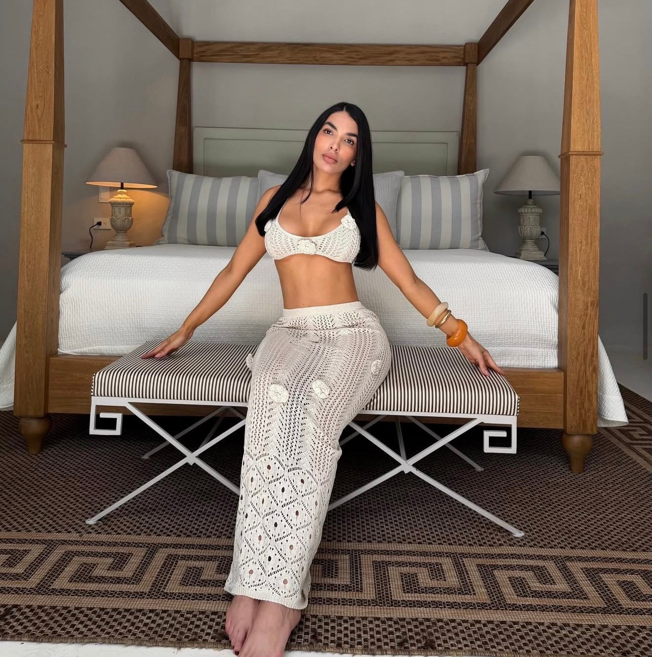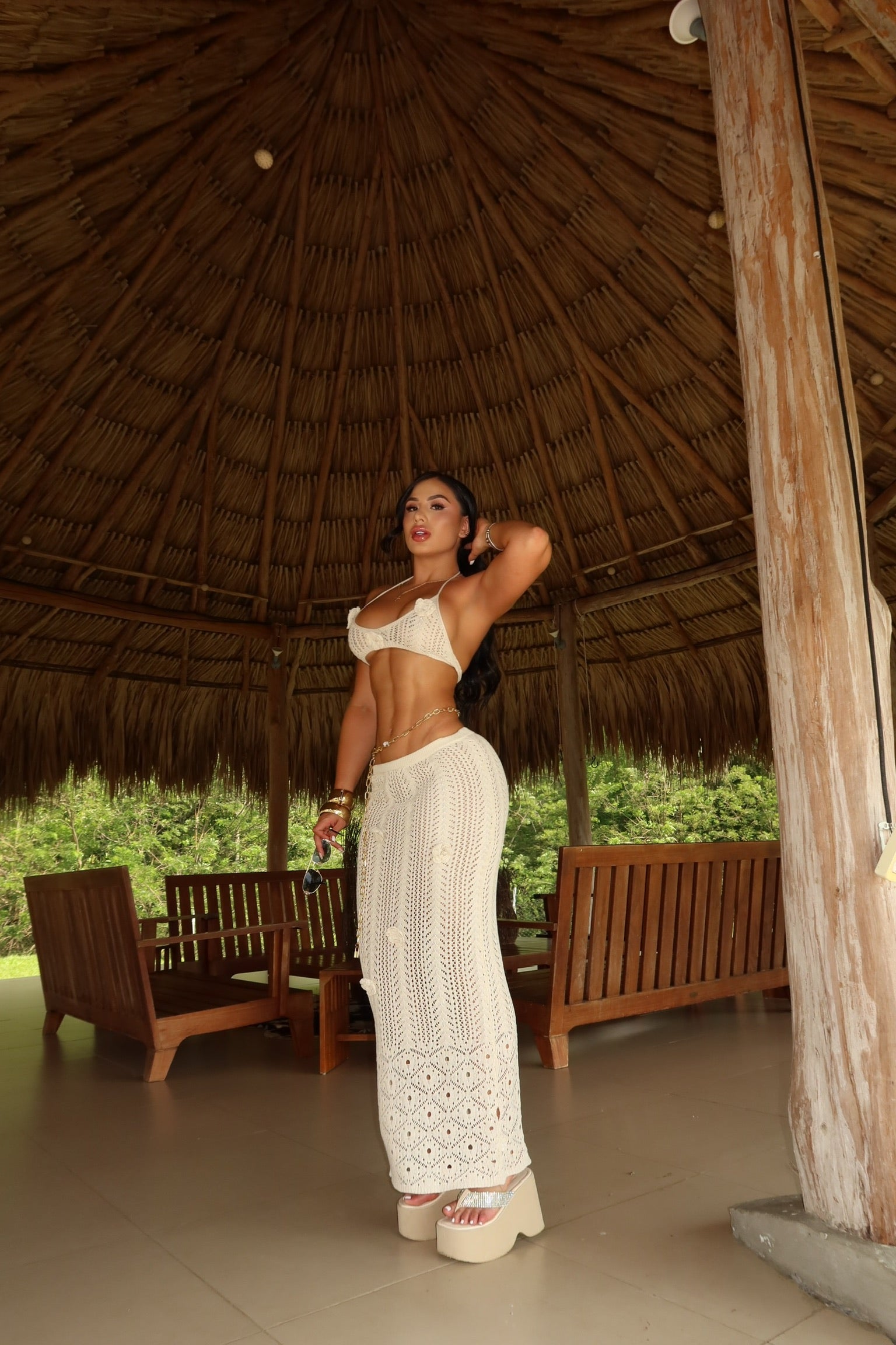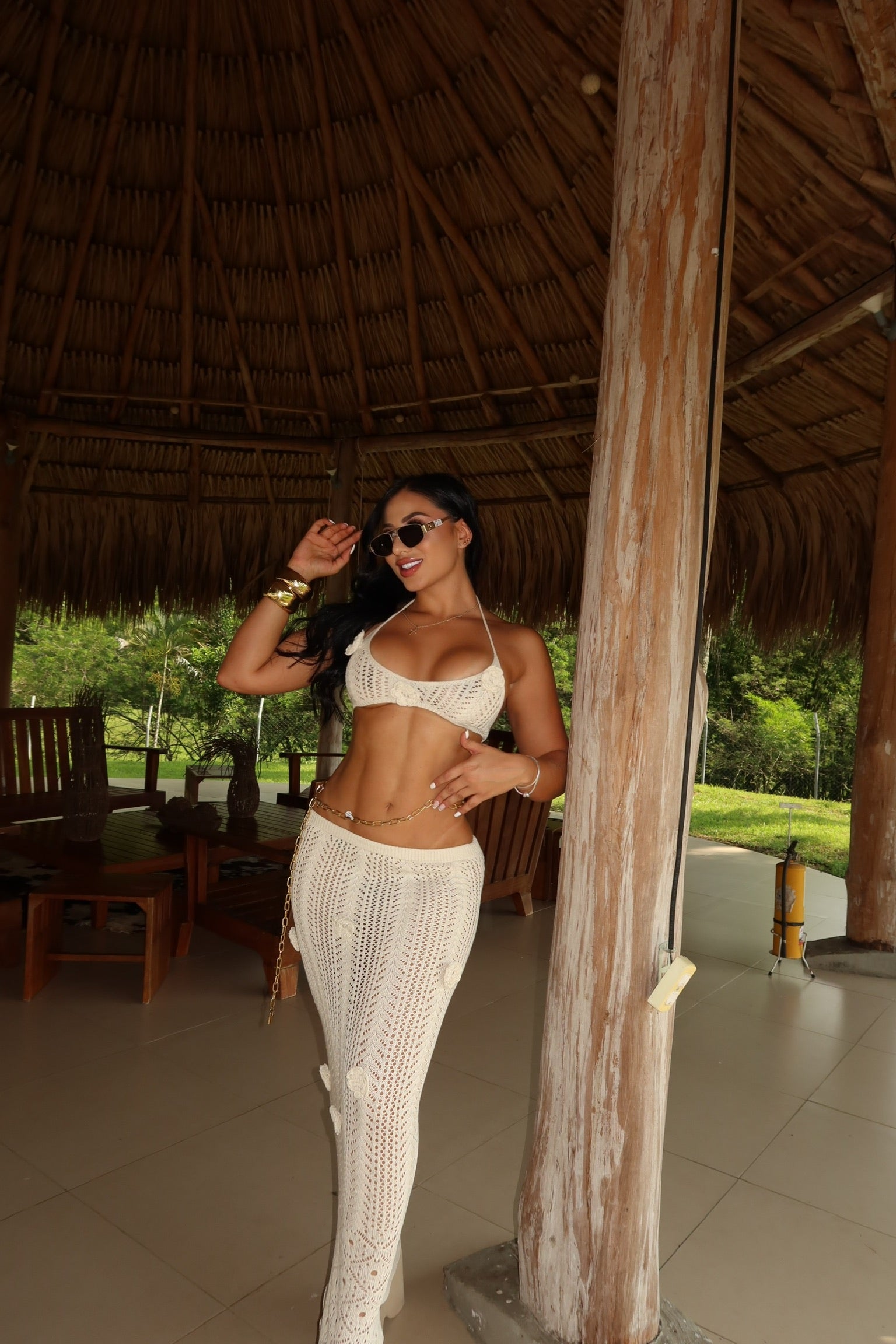 Nuestro set de dos piezas es el aliado perfecto para tus días de sol. Diseñado en un tejido ligero y fresco, ideal para climas cálidos, combina comodidad y estilo en un solo look. Su silueta favorecedora lo hace perfecto para usar sobre el vestido de baño o como outfit relajado para paseos de playa, pool party o vacaciones.