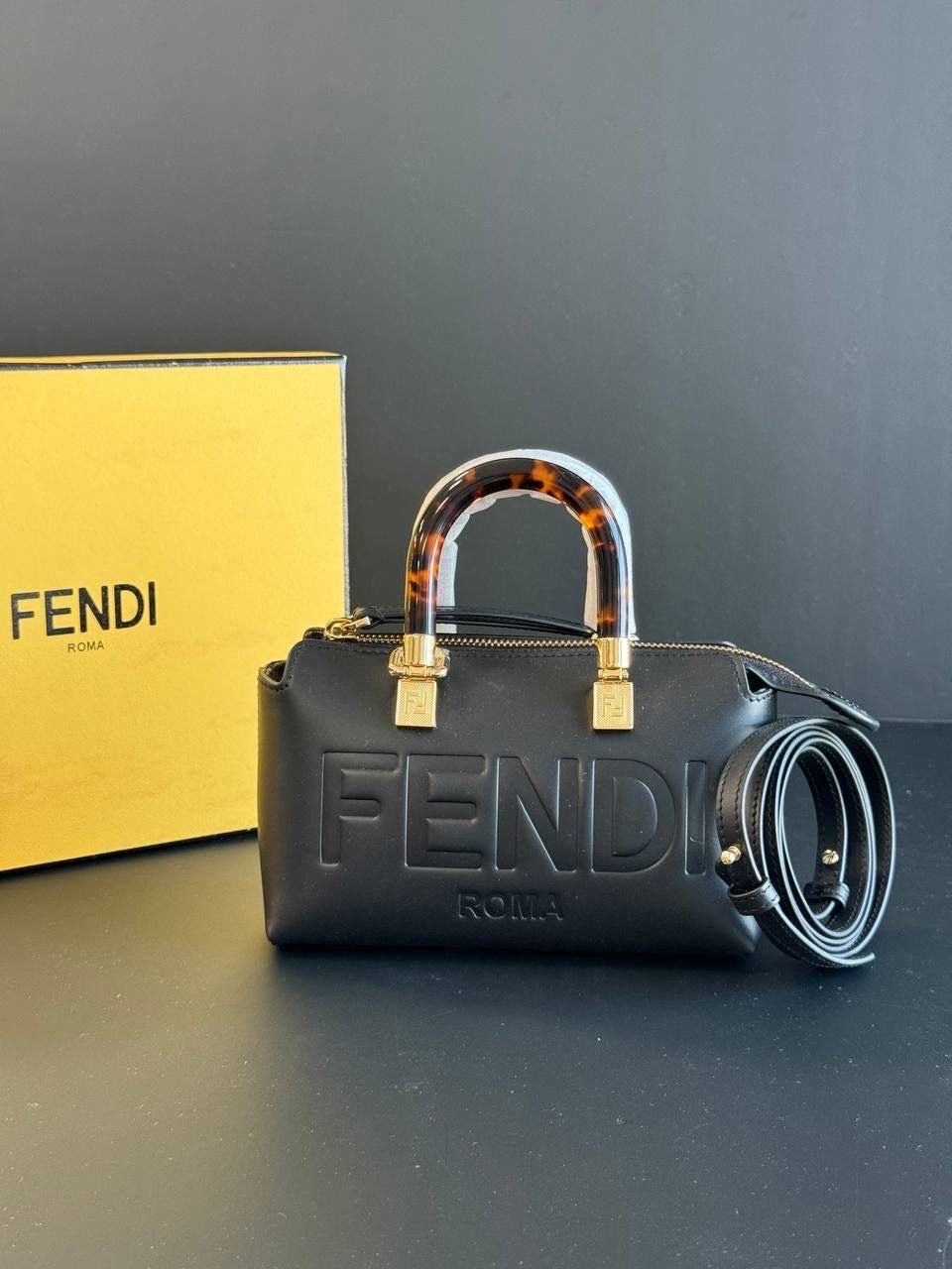 Bolso Fendi de diseño estructurado, con asa rígida efecto carey. Sofisticado y versátil.